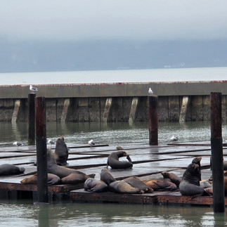 We spent New Year’s Eve along Fisherman’s Wharf, taking in the festive lights and lively waterfront atmosphere. From the docks, we could see Alcatraz Island in the distance during daytime walks, a quiet reminder of the city’s layered history. The wharf itself was alive with the playful energy of sea lions lounging on the docks, barking and flopping in the sun.